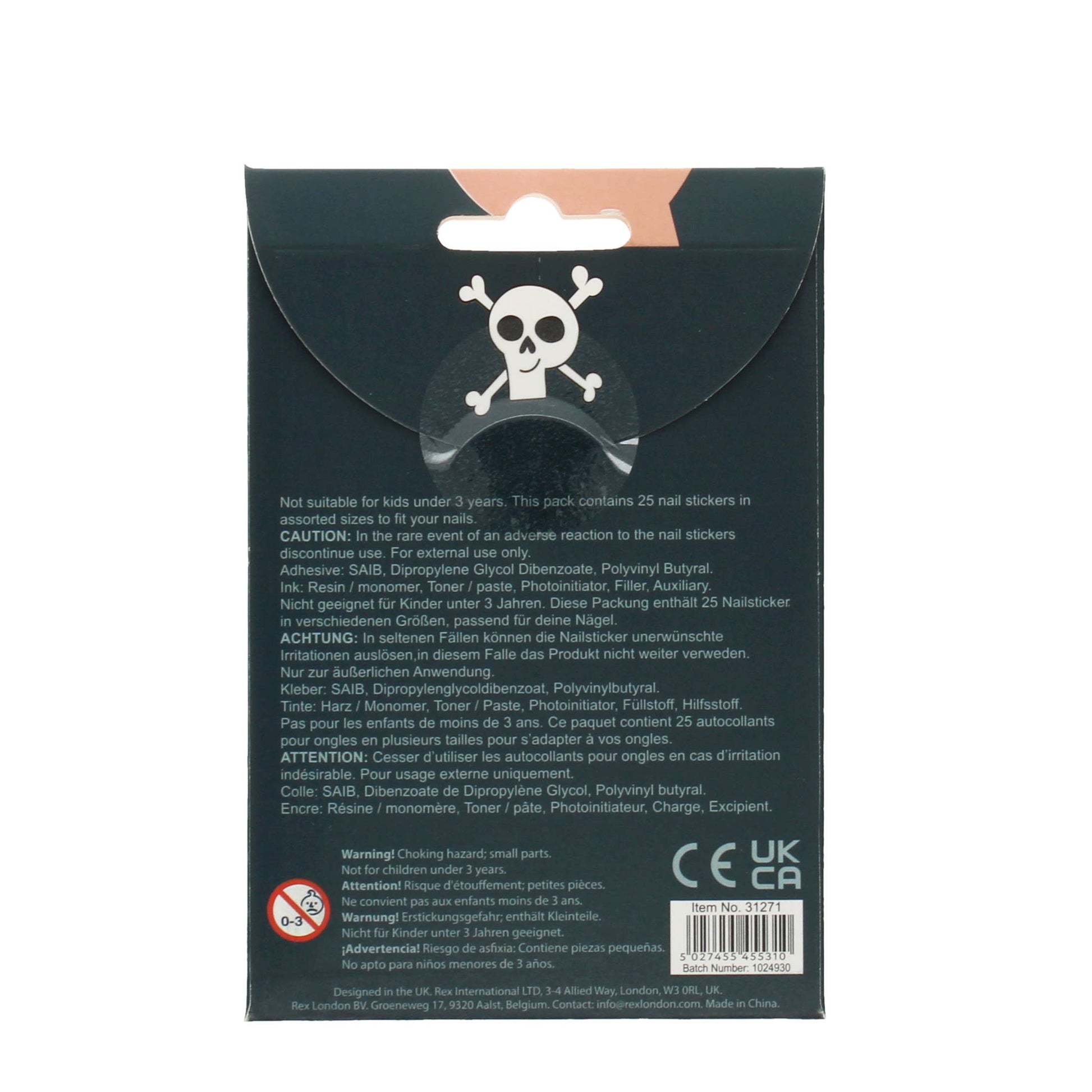 Let your little ones express their style with these easy-to-apply nail stickers, featuring a ghoulish face, skull and crossbones, spider, ghost and bat. The pack includes five sets of stickers (25 scary nail stickers altogether). The perfect treat for Halloween or accessory for a Halloween costume!
