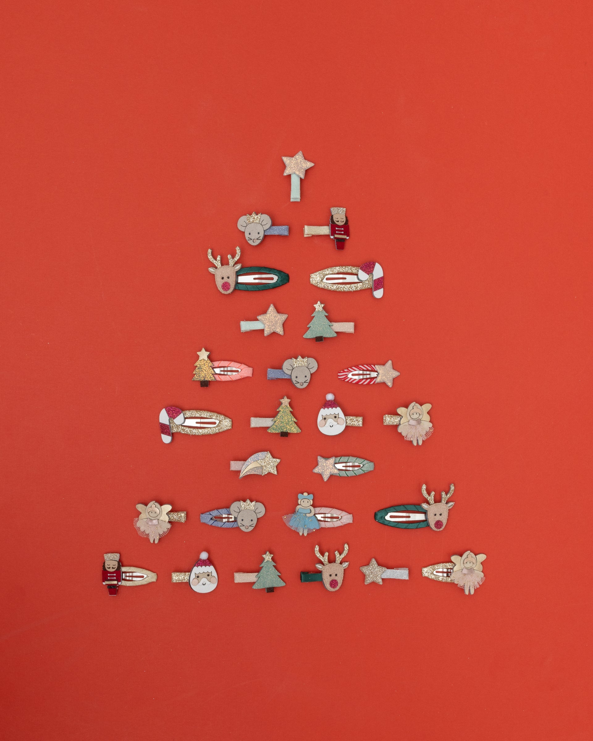 Gorgeously festive Mimi & Lula set of five Nutcracker mini hair clips. These clic-clac clips are wrapped in ribbon with matte, metallic and glitter Nutcracker, fairy, ballerina, mouse and star.
